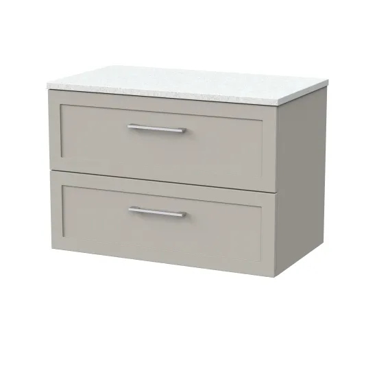 nuie Lux Larck 800mm 2- Drawer Wall Hung Unit with Laminate Worktop - Pebble Grey