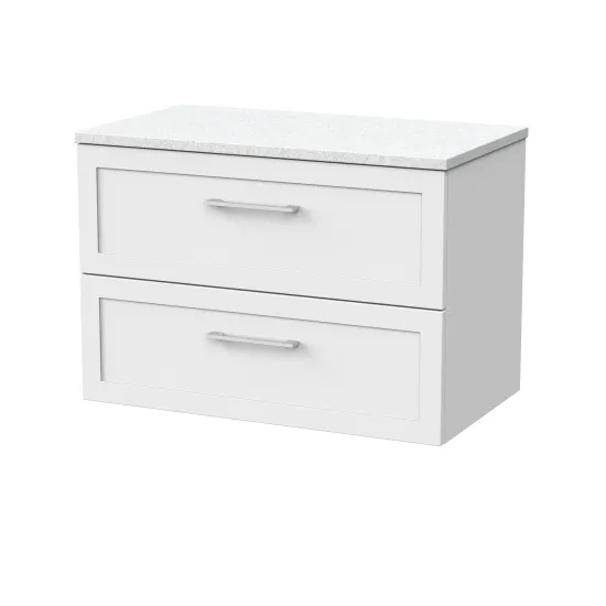 nuie Lux Larck 800mm 2- Drawer Wall Hung Unit with Laminate Worktop - Matt White