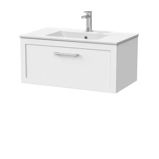 nuie Lux Larck 800mm Single Drawer Wall Hung Unit with 1 Tap Hole Minimalist Basin Top - Matt White