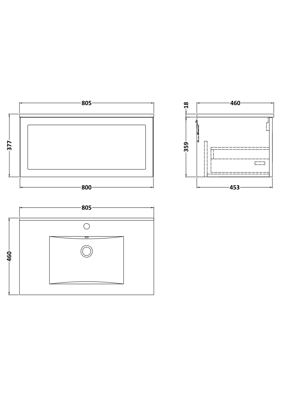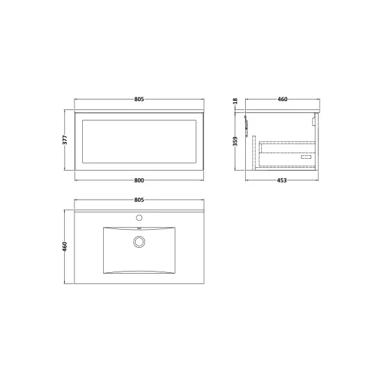 Larck 800mm Single Drawer Wall Hung Unit with 1 Tap Hole Minimalist Basin Top