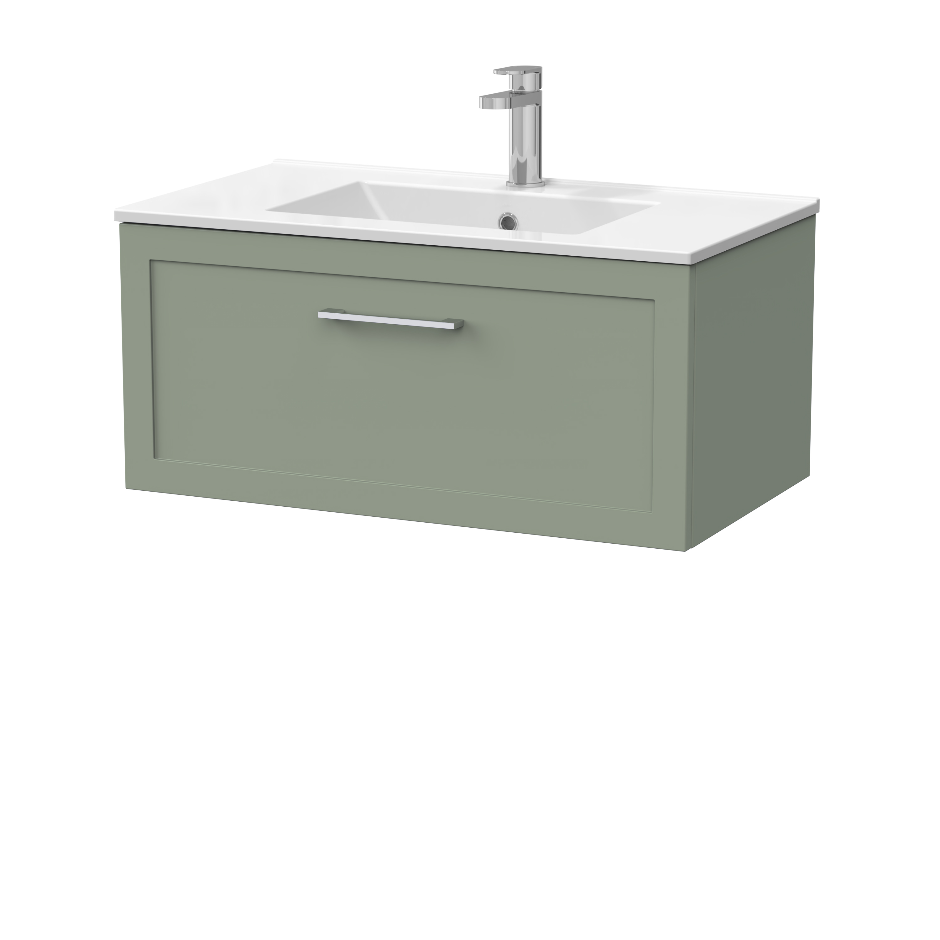 nuie Lux Larck 800mm Single Drawer Wall Hung Unit with 1 Tap Hole Minimalist Basin Top - Fern Green