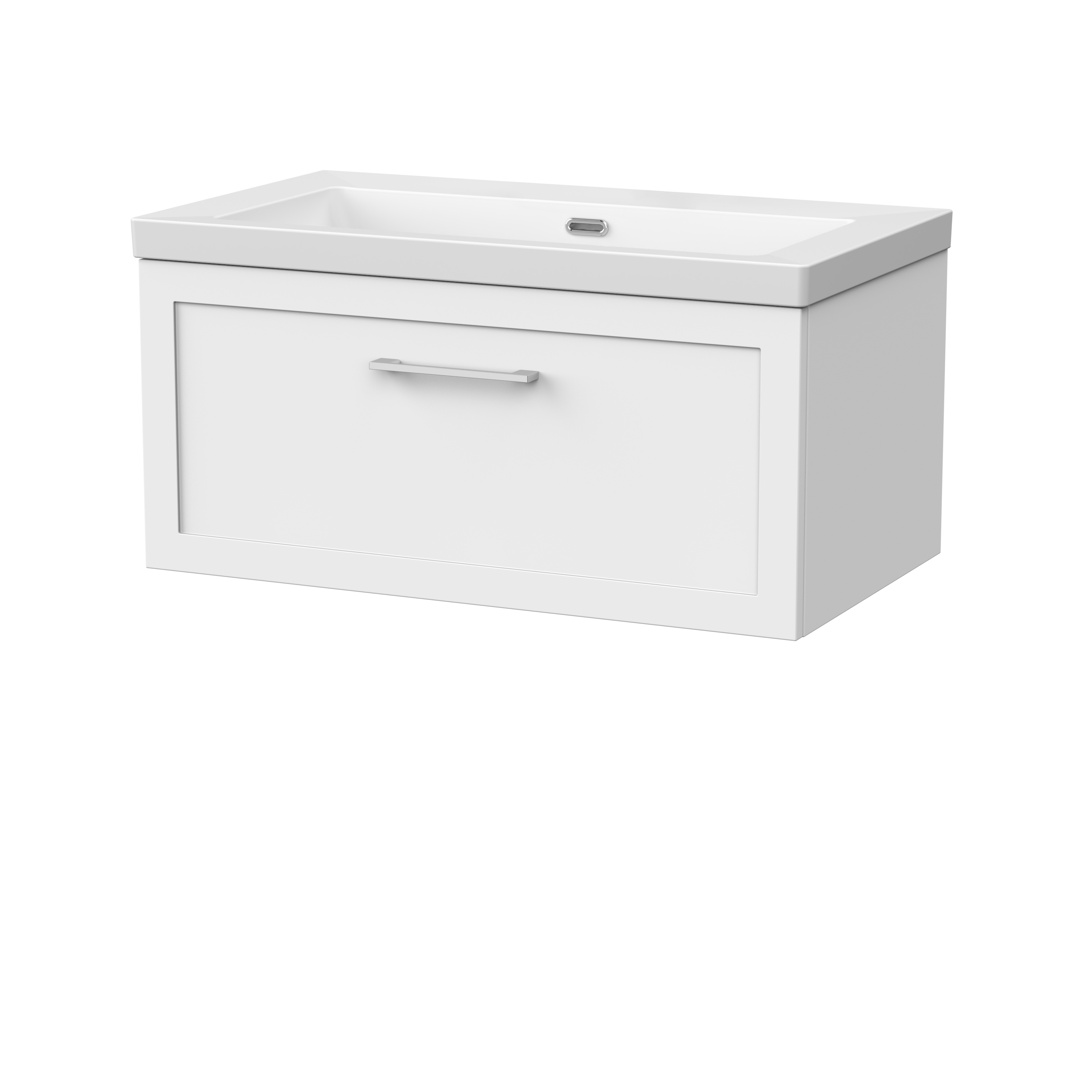 nuie Lux Larck 800mm Single Drawer Wall Hung Unit with Contemporary Fireclay Basin - 0 Tap Holes - Matt White