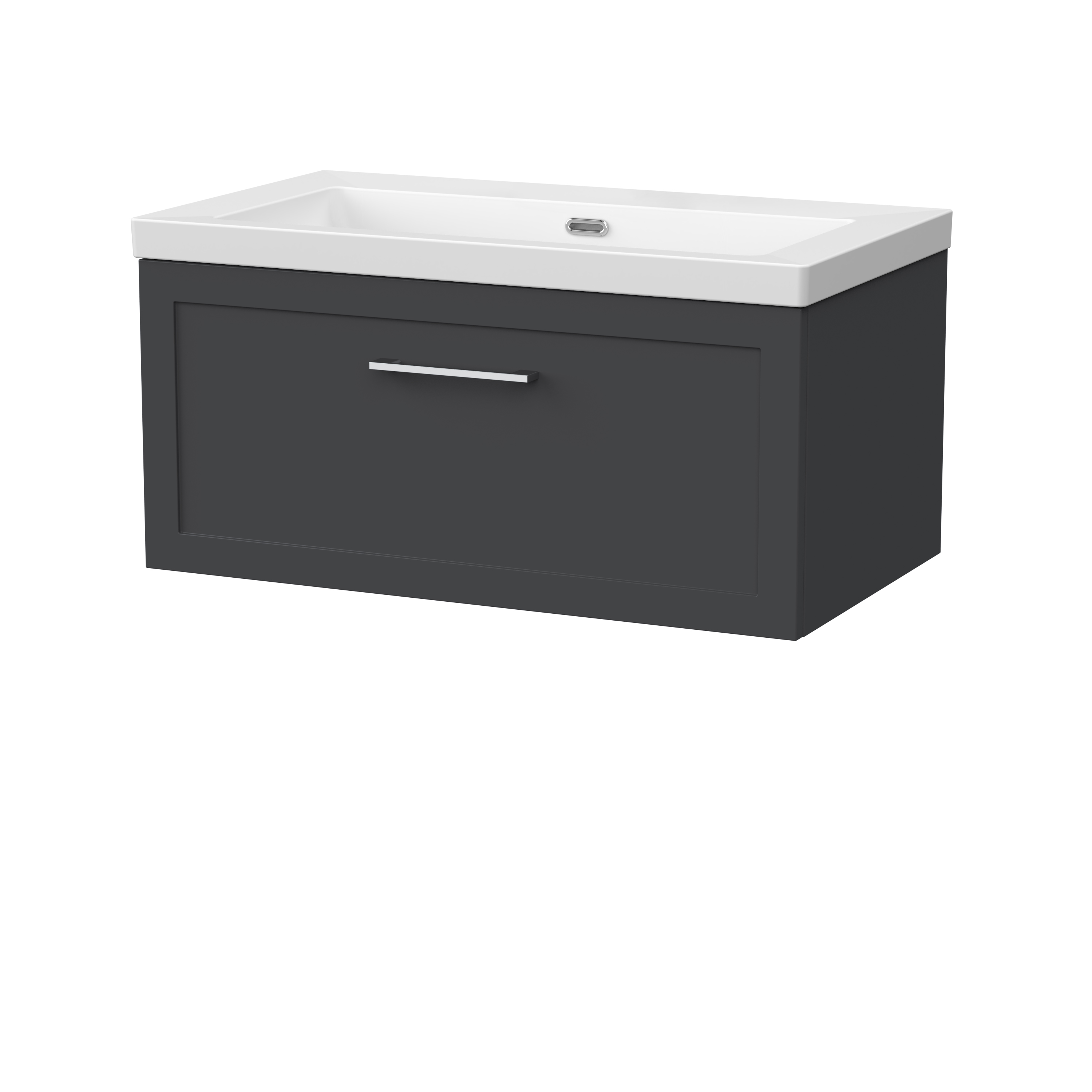 nuie Lux Larck 800mm Single Drawer Wall Hung Unit with Contemporary Fireclay Basin - 0 Tap Holes - Soft Black