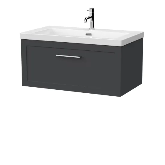 nuie Lux Larck 800mm Single Drawer Wall Hung Unit with Contemporary Fireclay Basin - 1 Tap Hole - Soft Black