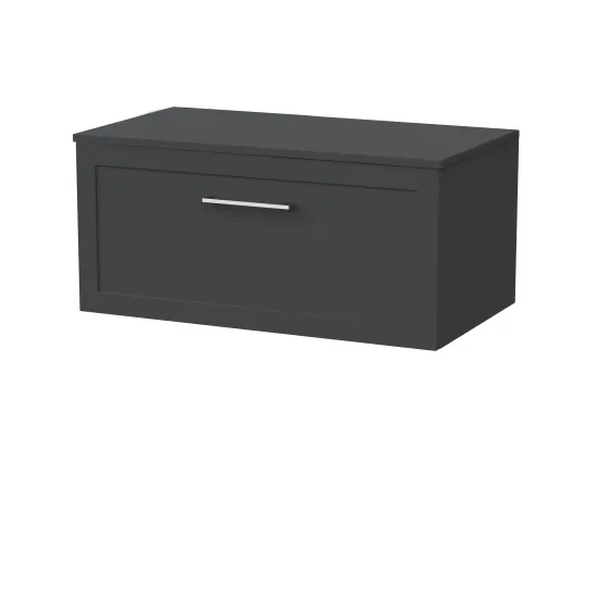 nuie Lux Larck 800mm Single Drawer Wall Hung Unit with Furniture Worktop - Soft Black