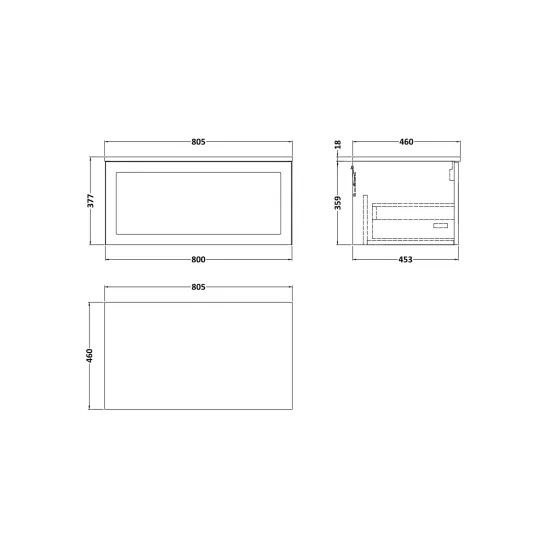 Larck 800mm Single Drawer Wall Hung Unit with Furniture Worktop