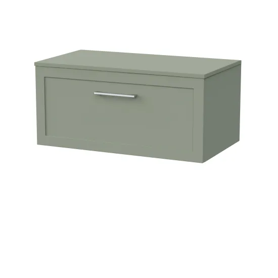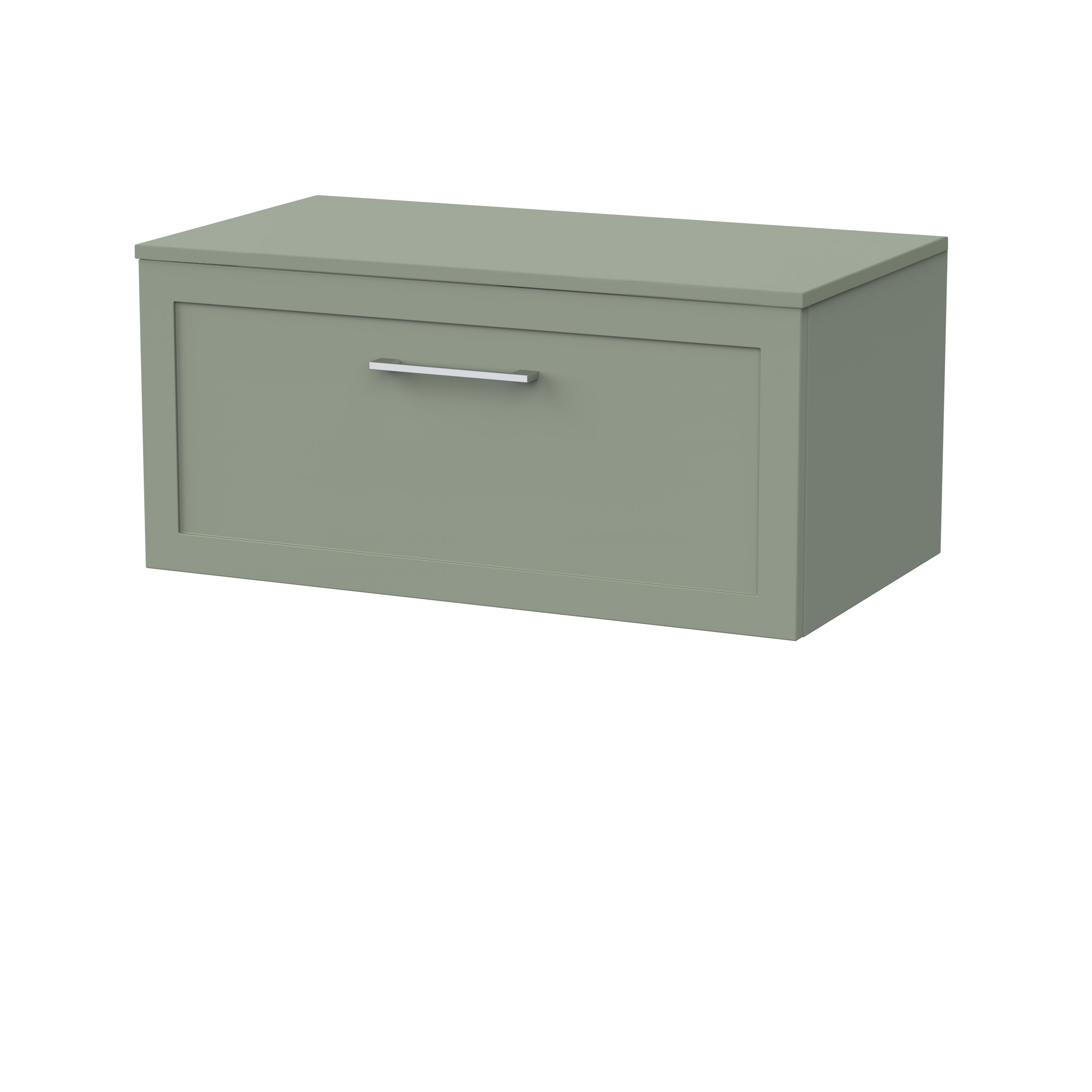 nuie Lux Larck 800mm Single Drawer Wall Hung Unit with Furniture Worktop - Fern Green