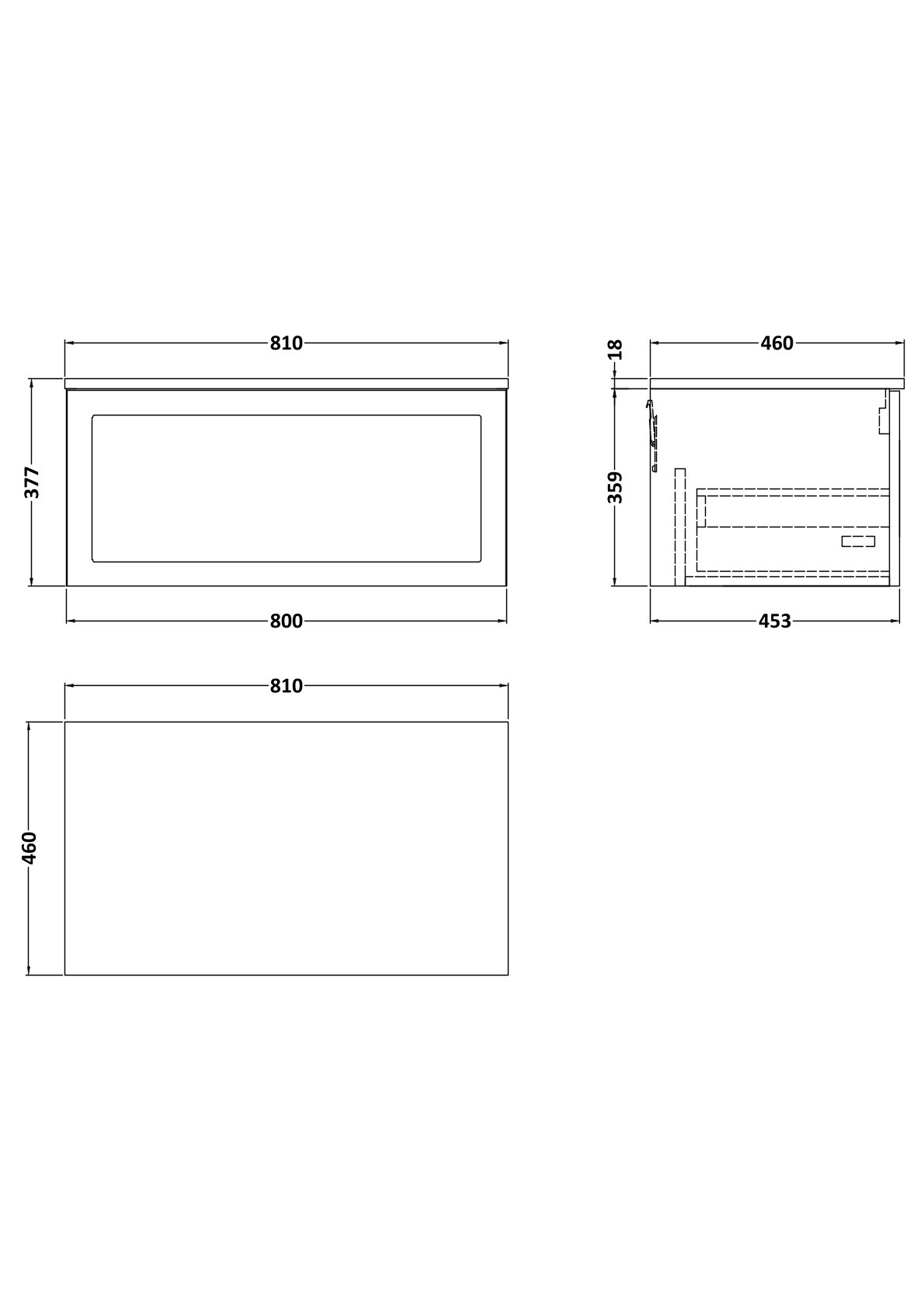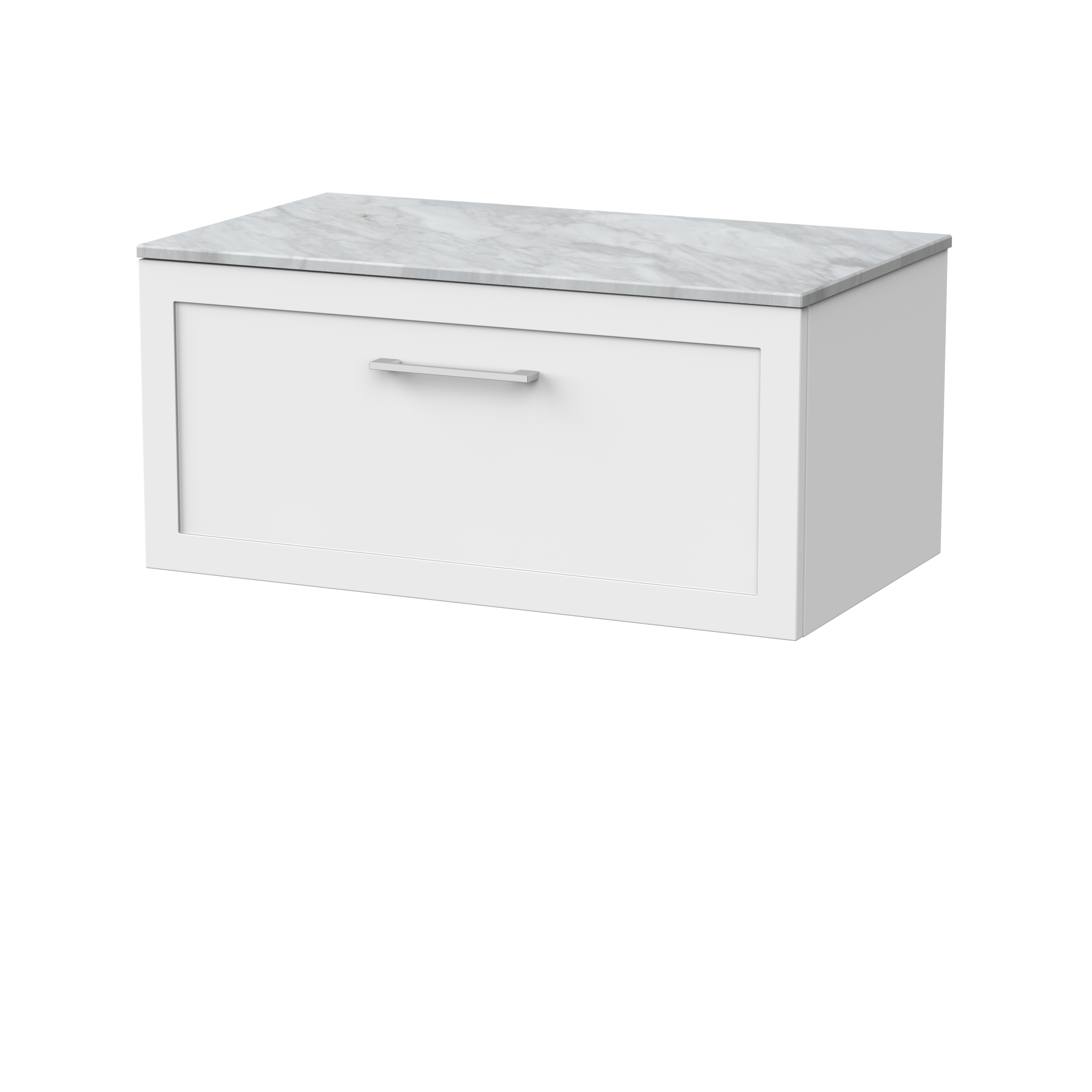 nuie Lux Larck 800mm Single Drawer Wall Hung Unit with Grey Marble Top - Matt White