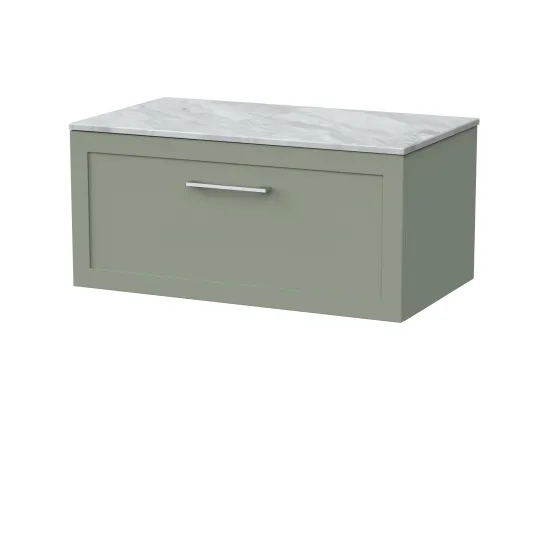 nuie Lux Larck 800mm Single Drawer Wall Hung Unit with Grey Marble Top - Fern Green