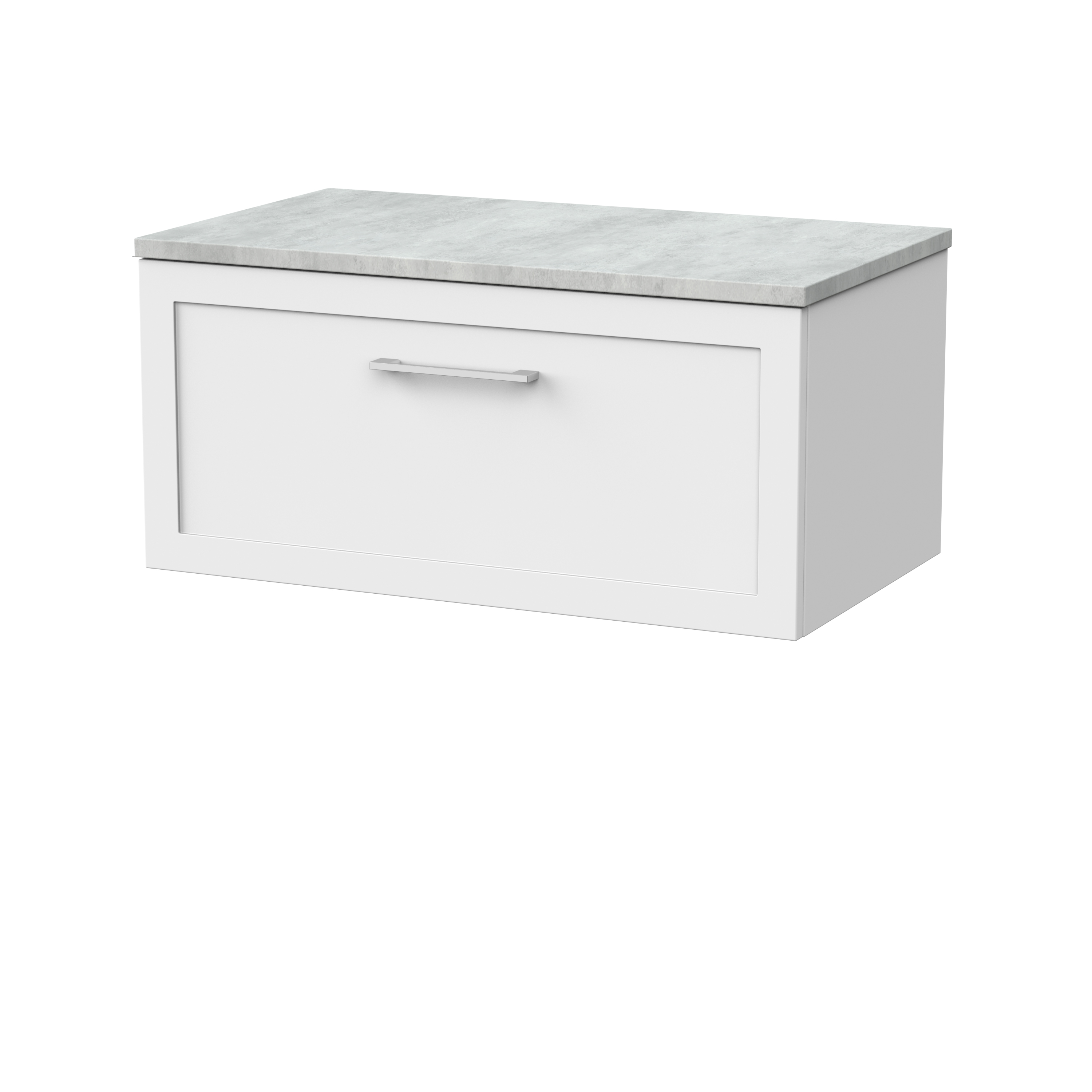 nuie Lux Larck 800mm Single Drawer Wall Hung Unit with Laminate Worktop - Matt White