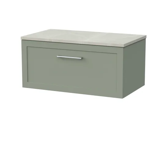 nuie Lux Larck 800mm Single Drawer Wall Hung Unit with Laminate Worktop - Fern Green