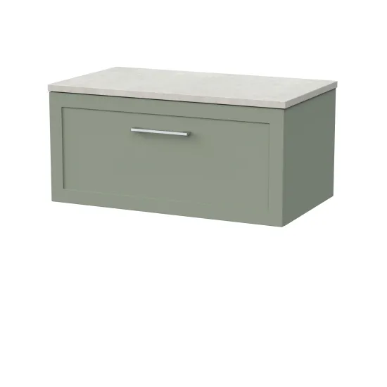 nuie Lux Larck 800mm Single Drawer Wall Hung Unit with Laminate Worktop - Fern Green