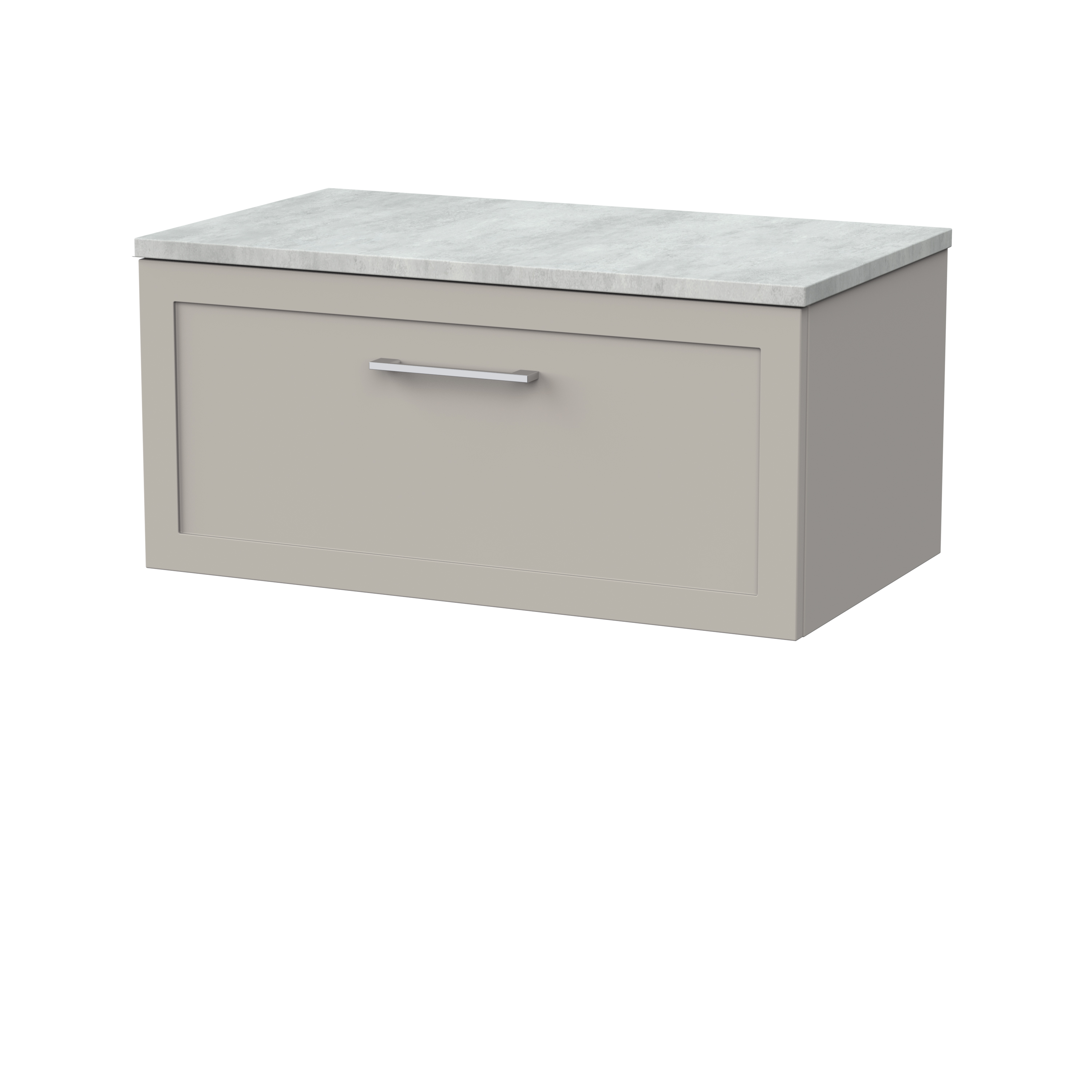 nuie Lux Larck 800mm Single Drawer Wall Hung Unit with Laminate Worktop - Pebble Grey