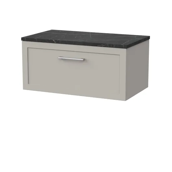 nuie Lux Larck 800mm Single Drawer Wall Hung Unit with Laminate Worktop - Pebble Grey