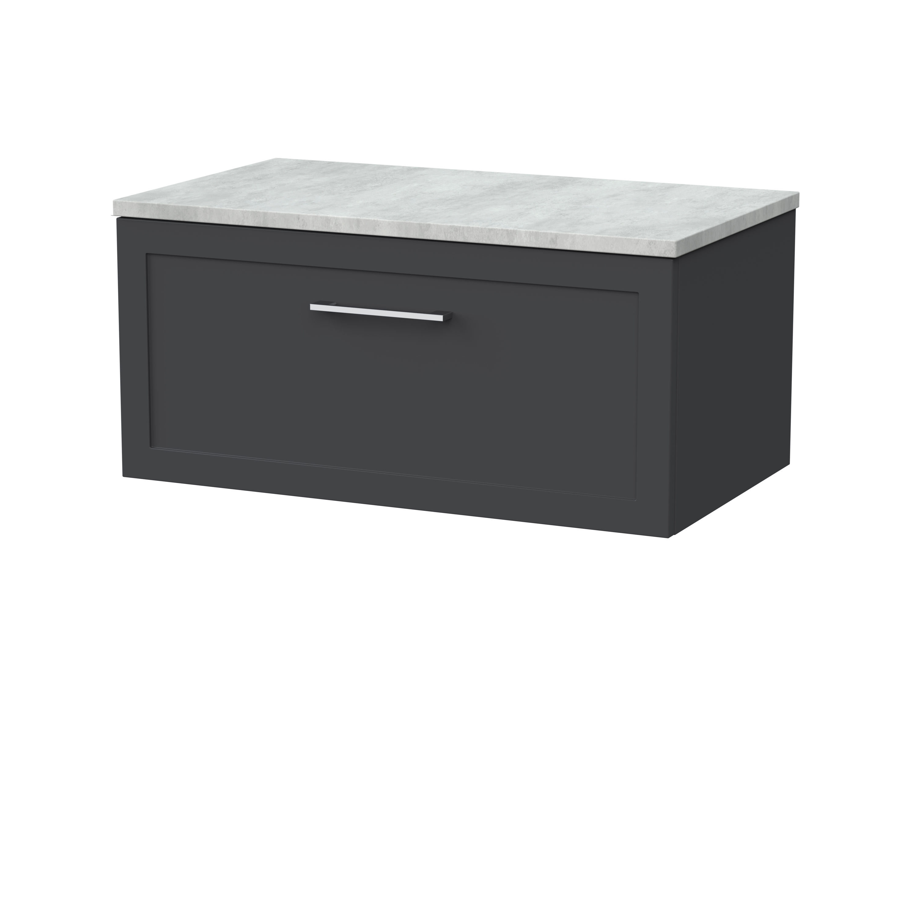 nuie Lux Larck 800mm Single Drawer Wall Hung Unit with Laminate Worktop - Soft Black
