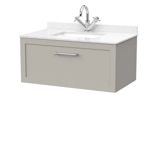 nuie Lux Larck 800mm Single Drawer Wall Hung Unit with Single Bowl Marble Top 1 Tap Hole in White - Pebble Grey