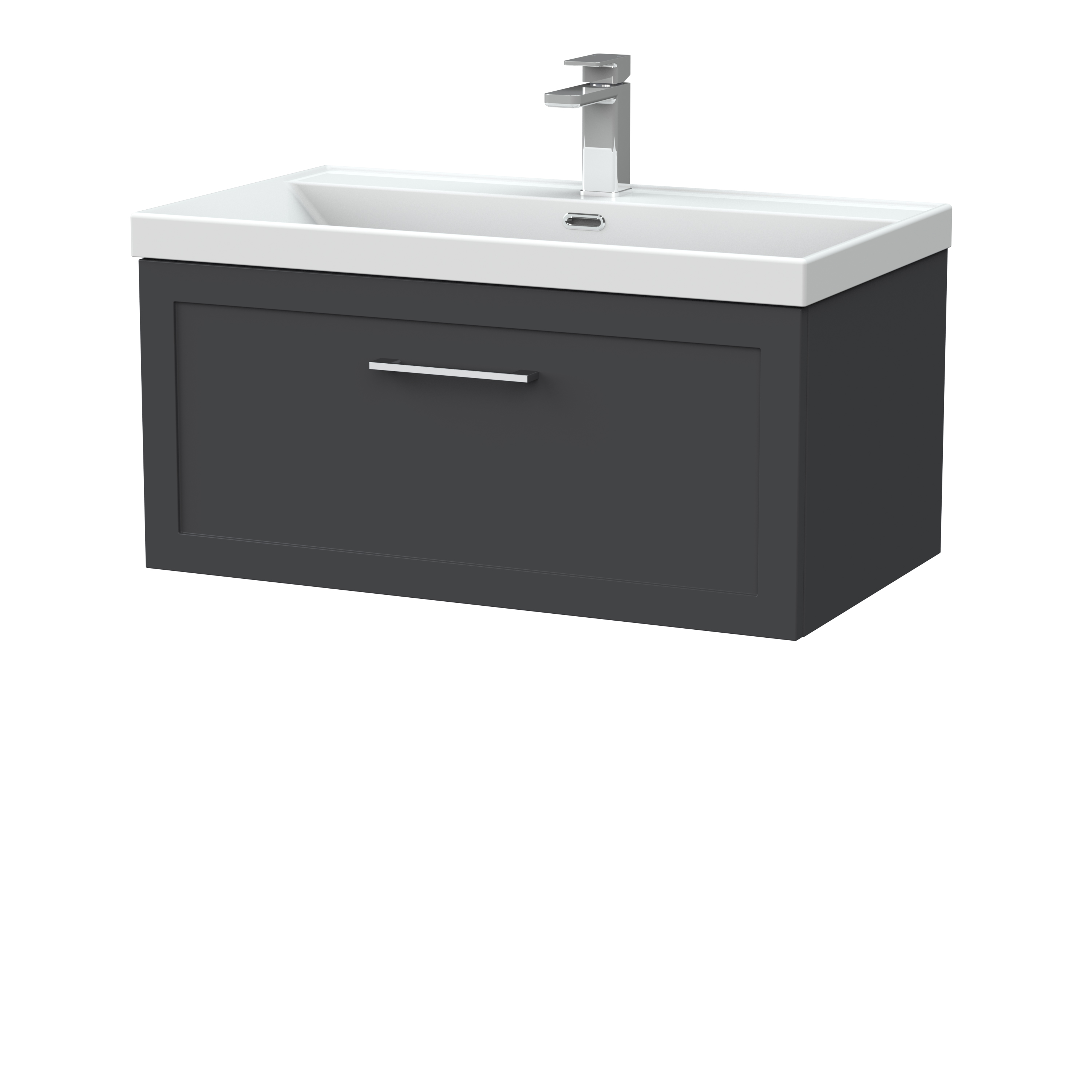 nuie Lux Larck 800mm Single Drawer Wall Hung Unit with Thin-Edge Basin - 1 Tap Hole - Soft Black