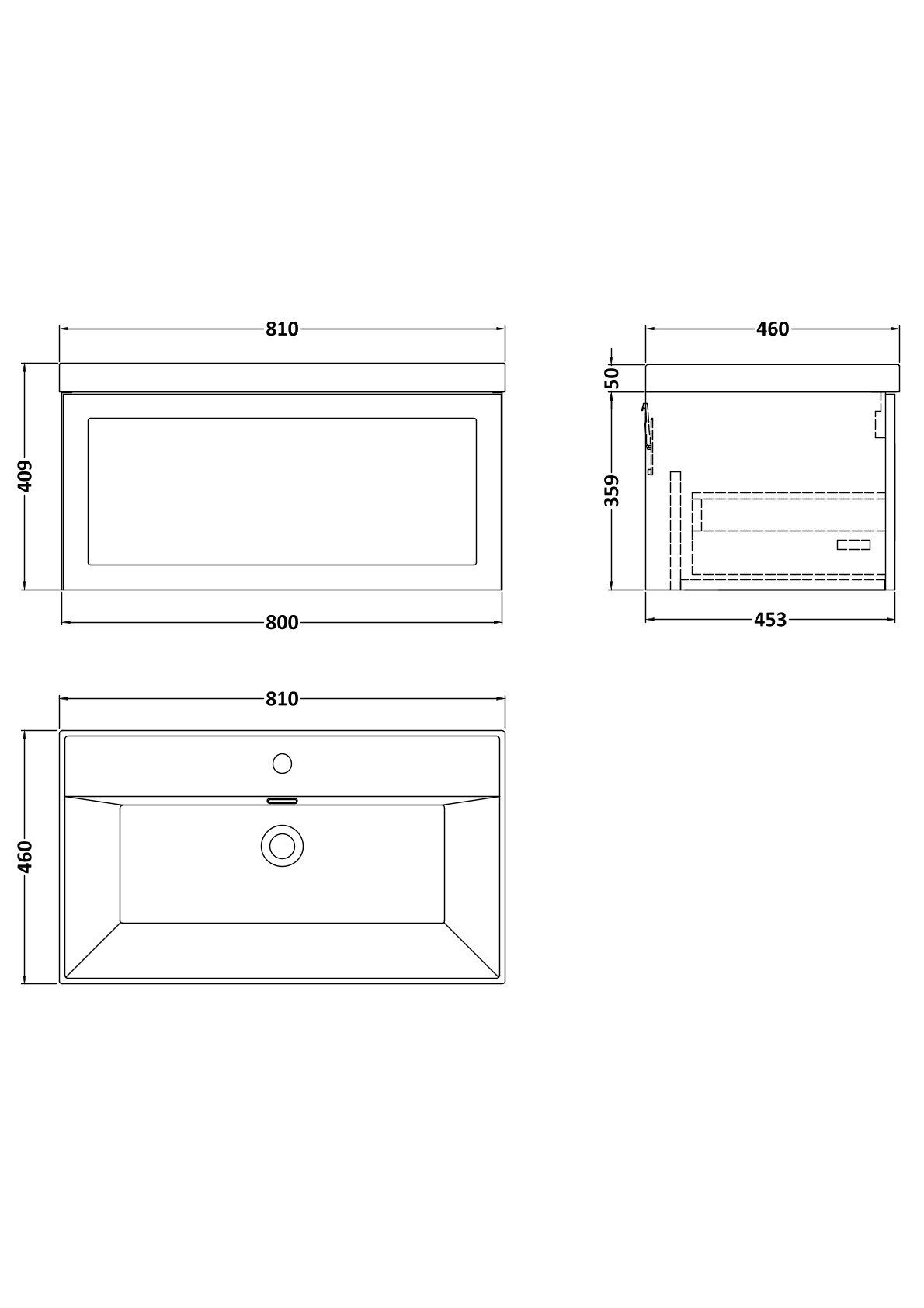 Larck 800mm Single Drawer Wall Hung Unit with Thin-Edge Basin - 1 Tap Hole