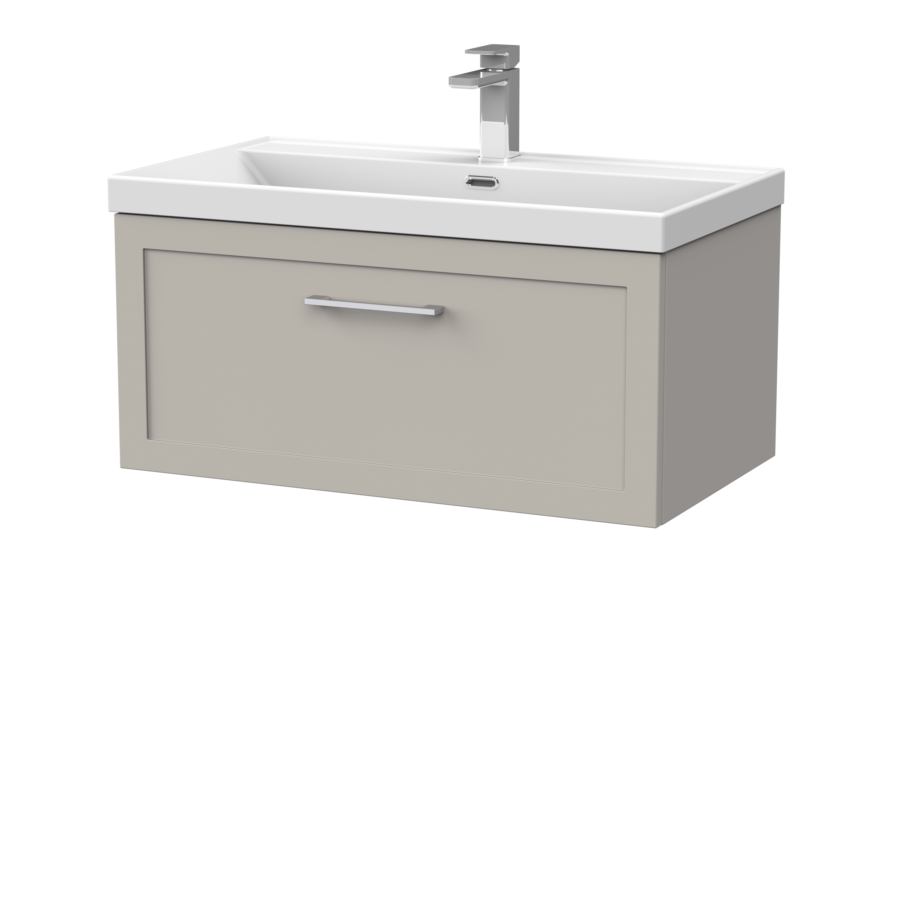 nuie Lux Larck 800mm Single Drawer Wall Hung Unit with Thin-Edge Basin - 1 Tap Hole - Pebble Grey
