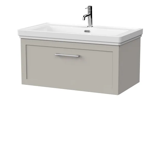 nuie Lux Larck 800mm Single Drawer Wall Hung Unit with Traditional Fireclay Basin - 1 Tap Hole - Pebble Grey