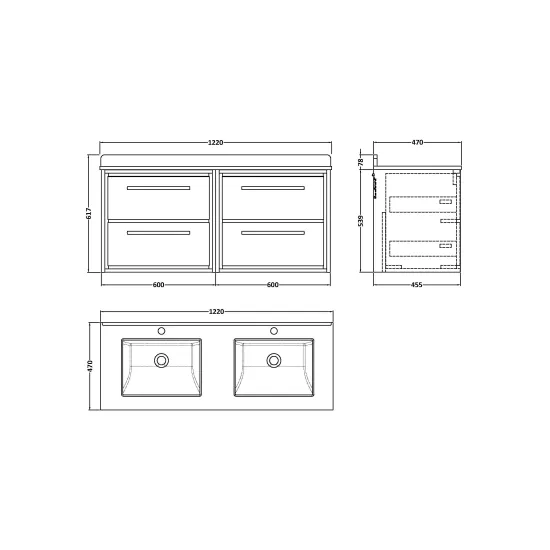 Hudson Reed Lille 1220mm Wall Hung 4-Drawer Vanity Unit With Double Marble Basins