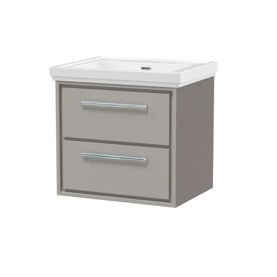 Hudson Reed Lille 600mm Wall Hung 2-Drawer Vanity with Basin - 0 Tap Hole - Pebble Grey
