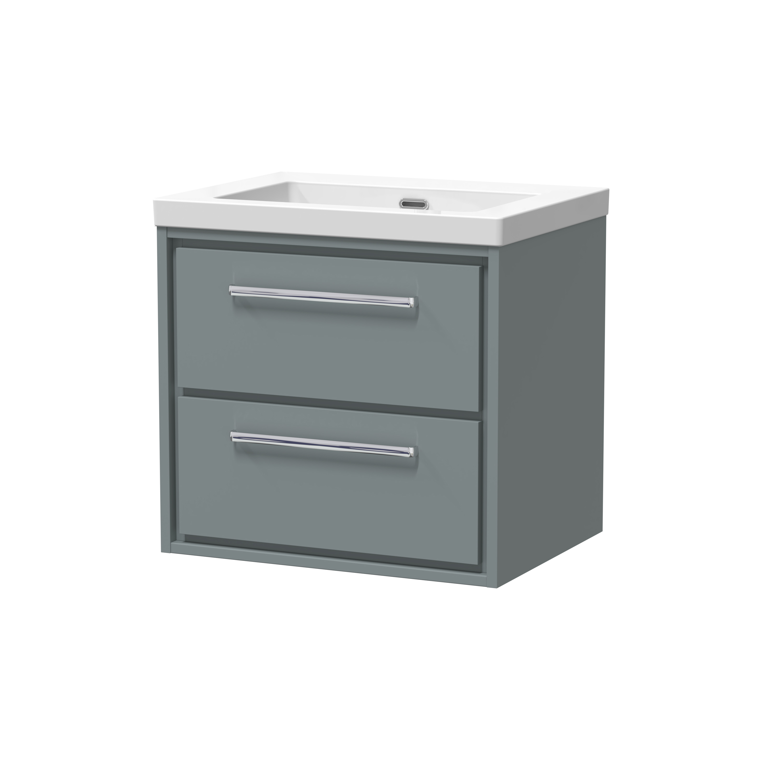 Hudson Reed Lille 600mm Wall Hung 2-Drawer Vanity with Basin - 0 Tap Hole - Coastal Grey