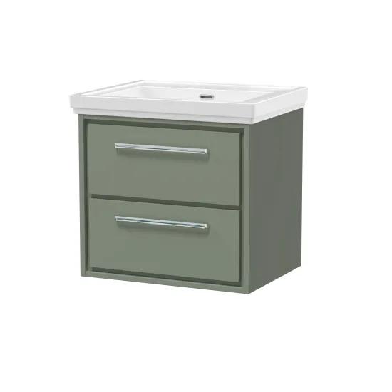 Hudson Reed Lille 600mm Wall Hung 2-Drawer Vanity with Basin - 0 Tap Hole - Fern Green