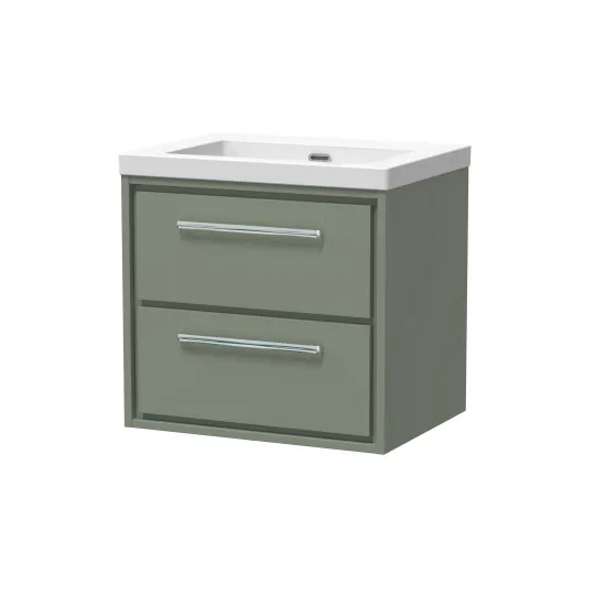 Hudson Reed Lille 600mm Wall Hung 2-Drawer Vanity with Basin - 0 Tap Hole - Fern Green