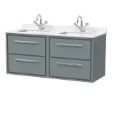Hudson Reed Lille 1220mm Fern Green Wall Hung 4-Drawer Vanity Unit With Double Marble Basins