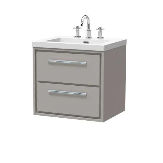 Hudson Reed Lille 600mm Wall Hung 2-Drawer Vanity with Basin - 3 Tap Hole - Pebble Grey