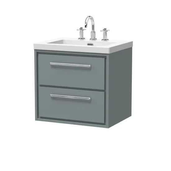 Hudson Reed Lille 600mm Wall Hung 2-Drawer Vanity with Basin - 3 Tap Hole - Coastal Grey
