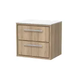 Hudson Reed Lille 600mm Bleached Oak Wall Hung 2-Drawer Vanity Unit With Marble Worktop