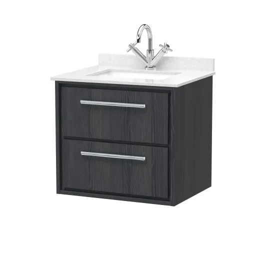 Hudson Reed Lille 600mm Wall Hung 2-Drawer Vanity with Marble Worktop Basin - Graphite Grey Woodgrain