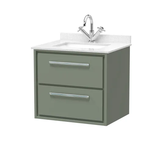 Hudson Reed Lille 600mm Wall Hung 2-Drawer Vanity with Marble Worktop Basin - Fern Green