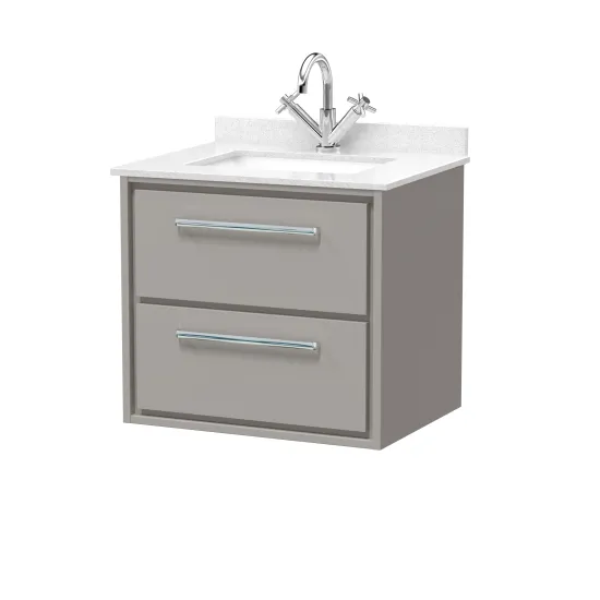 Hudson Reed Lille 600mm Wall Hung 2-Drawer Vanity with Marble Worktop Basin - Pebble Grey
