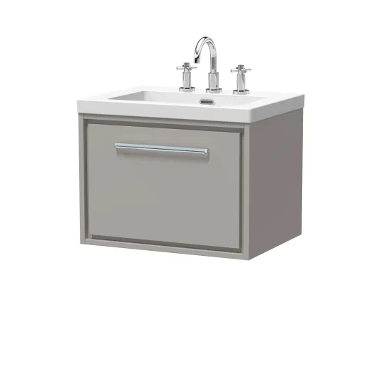 Hudson Reed Lille 600mm Wall Hung Single Drawer Vanity with Basin - 3 Tap Hole - Pebble Grey