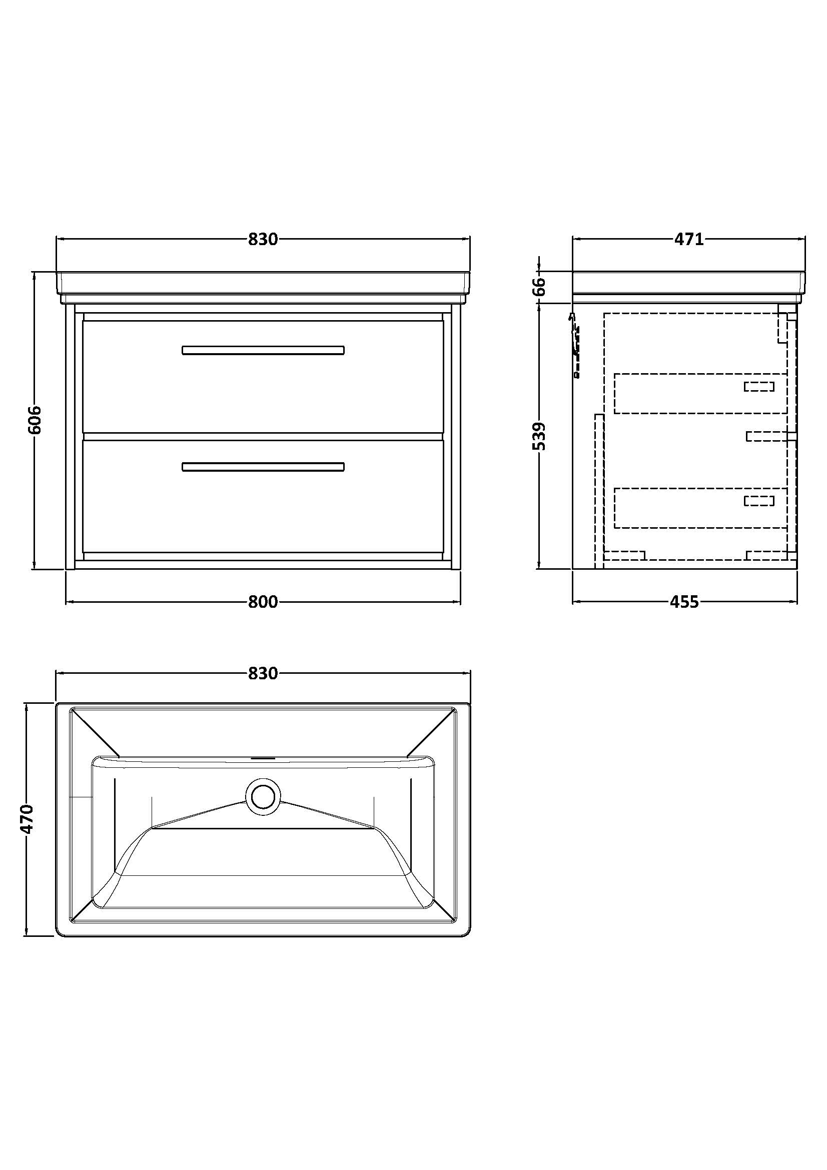 Lille 800mm Wall Hung 2-Drawer Vanity with Basin - 0 Tap Hole
