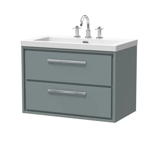 Hudson Reed Lille 800mm Wall Hung 2-Drawer Vanity with Basin - 3 Tap Hole - Coastal Grey