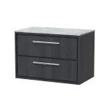 Hudson Reed Lille 810mm Graphite Grey Woodgrain Wall Hung 2-Drawer Vanity Unit With Marble Worktop