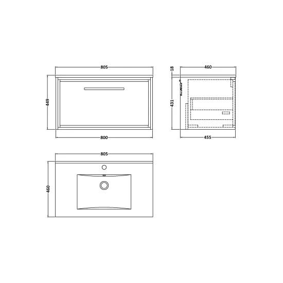 Lille 800mm Wall Hung Single Drawer Vanity with Basin - 1 Tap Hole