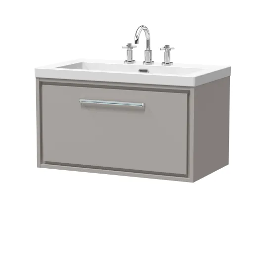 Hudson Reed Lille 800mm Wall Hung Single Drawer Vanity with Basin - 3 Tap Hole - Pebble Grey