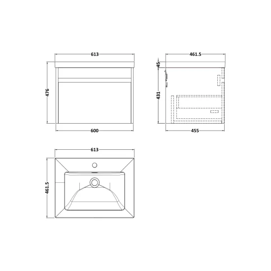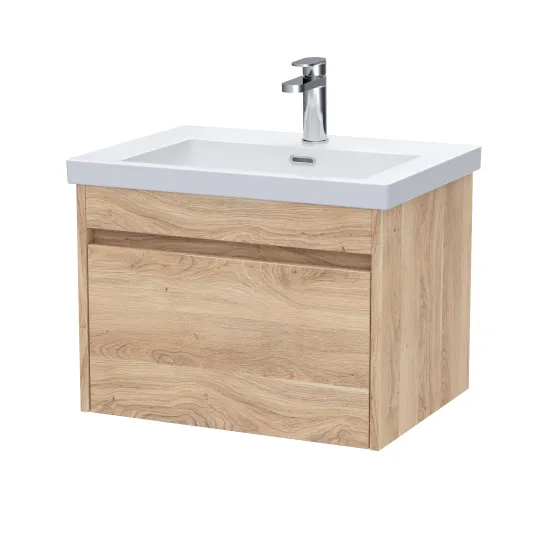 Loftwood 600mm Wall Hung 1 Drawer Unit and 1 Tap Hole Contemporary Basin - Bleached Oak