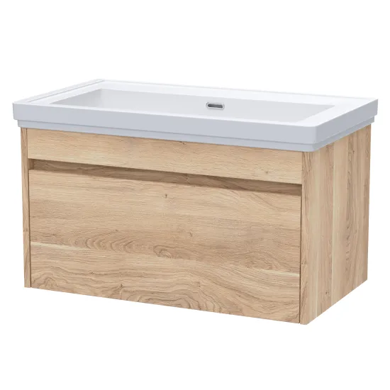 Loftwood 800mm Wall Hung 1 Drawer Unit and 0 Tap Hole Classic Basin - Bleached Oak