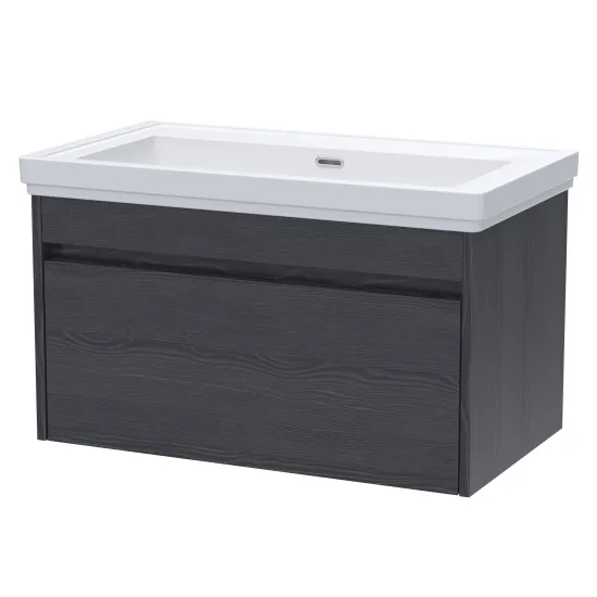 Loftwood 800mm Wall Hung 1 Drawer Unit and 0 Tap Hole Classic Basin - Graphite Grey Woodgrain