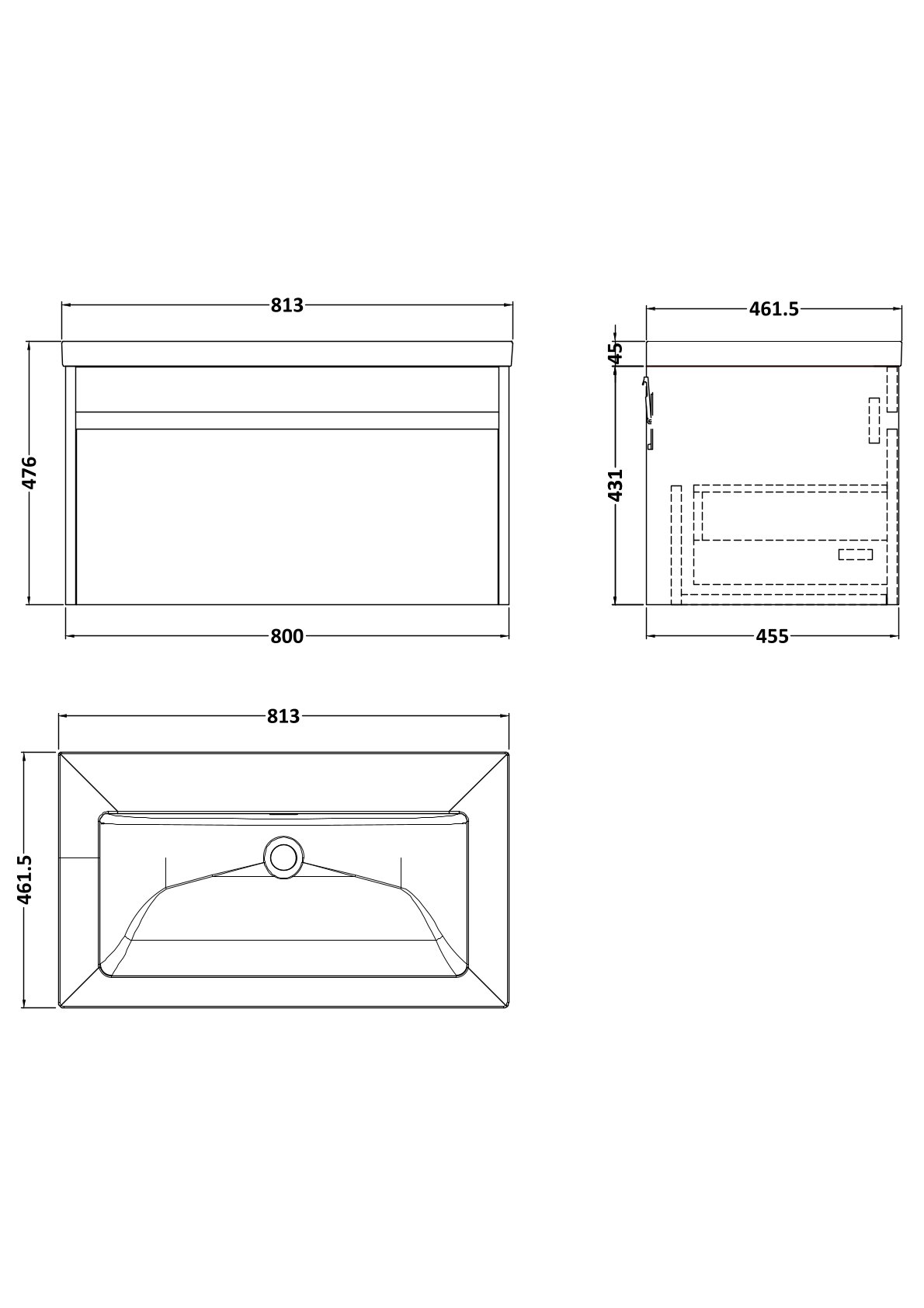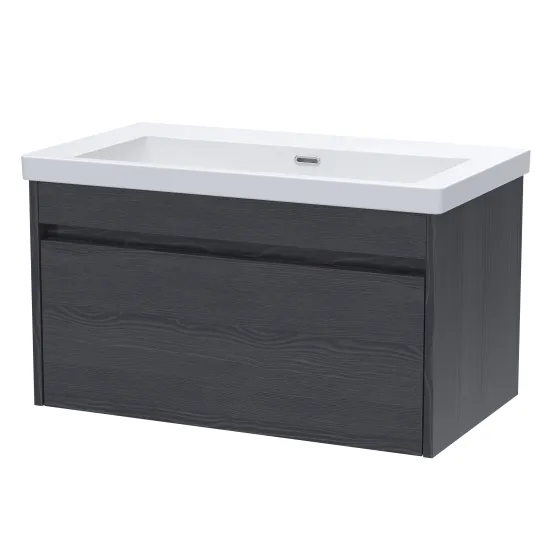 Loftwood 800mm Wall Hung 1 Drawer Unit and 0 Tap Hole Contemporary Basin - Graphite Grey Woodgrain