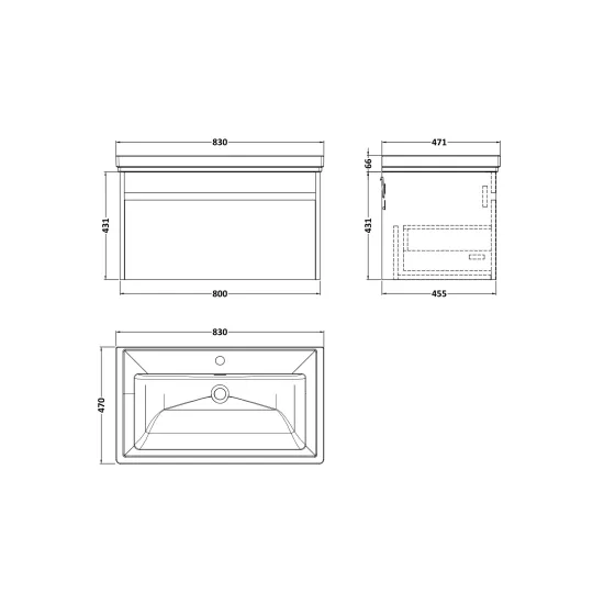 Loftwood 800mm Wall Hung 1 Drawer Unit and 1 Tap Hole Classic Basin - Autumn Oak