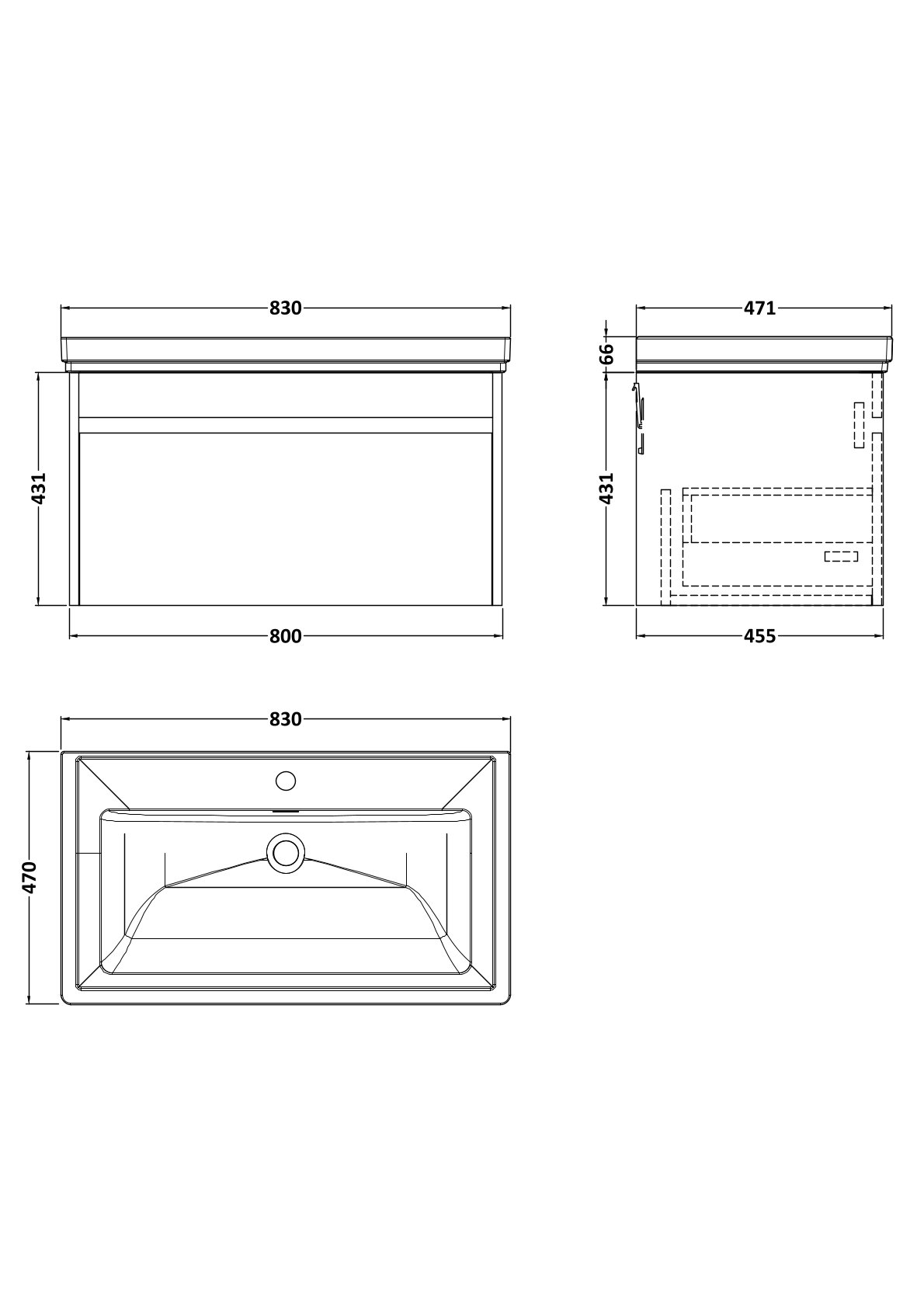 BC Designs Loftwood 800mm Wall Hung 1 Drawer Unit and 1 Tap Hole Classic Basin - Metallic Slate