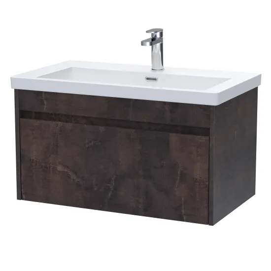 BC Designs Loftwood 800mm Wall Hung 1 Drawer Unit and 1 Tap Hole Contemporary Basin - Metallic Slate