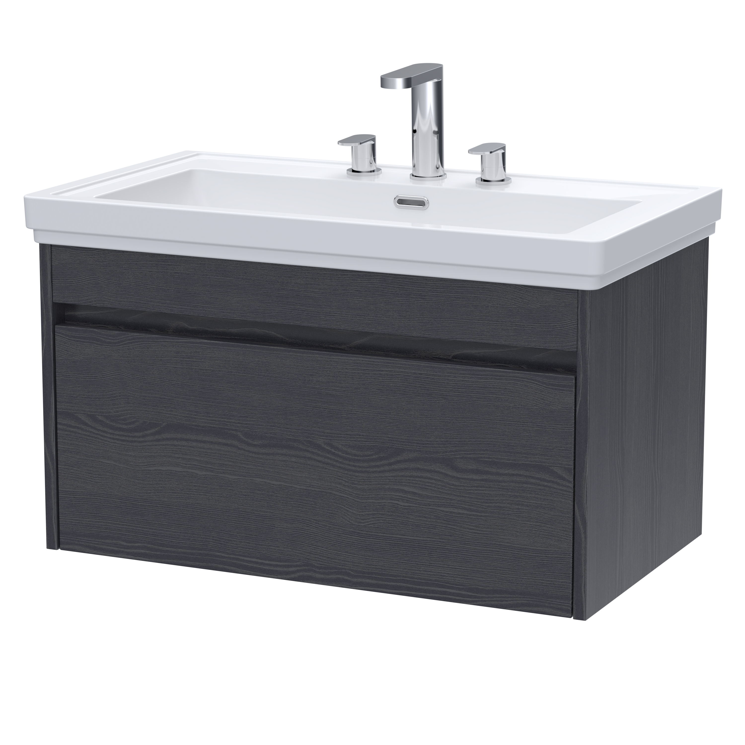 Loftwood 800mm Wall Hung 1 Drawer Unit and 3 Tap Hole Classic Basin - Graphite Grey Woodgrain